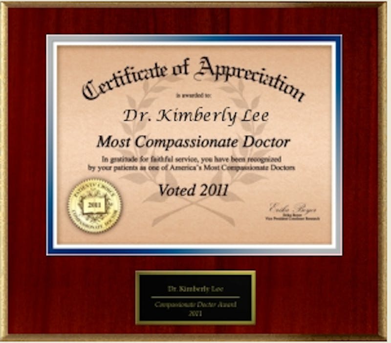 Dr. Lee has been selected for the Patients' Choice Award in 2012, which is her third consecutive year receiving the award! . More than 200,000 patient reviews and ratings are gathered each month. This top rating has only been awarded to Dr. Lee and a select few of the nation...